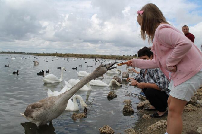 Живописный поселок Заозерное находится в 8 км от Евпатории и является частью городского округа. Официально сезон открывается с 1 июня, но желающие погреться на песчаных пляжах приезжают сюда в конце апреля-начале мая. Существует несколько причин, почему поселок выбирают для отпуска семейные пары с детьми. Во-первых, мягкий морской климат очень полезен для здоровья. Во-вторых, здесь создана большая рекреационная инфраструктура именно для детского отдыха. Побережье считается идеальным для купания малышей. Они с удовольствием играют на пляже, строят песчаные замки. Главным аргументом безопасного купания является пологий спуск в море и мелководье возле берега.