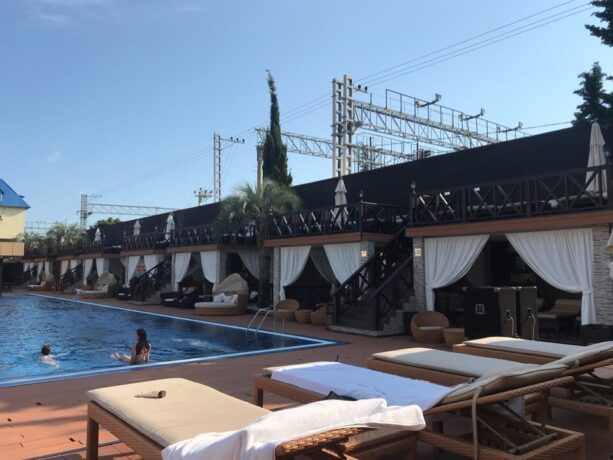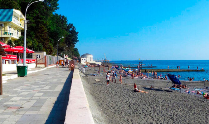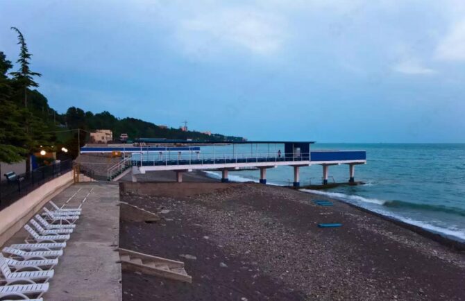Не все отели Сочи могут похвастать собственной пляжной территорией. Счастливым исключением является курортный СПА-комплекс «Звездный». Его пляж находится в центре городской набережной, а сам отель расположен в 20 минутах ходьбы от моря вверх по речному течению. Для постояльцев предоставляется трансфер от/до береговой линии. Эта территория пользуется огромным спросом у любителей отдыхать в красивой обстановке, а также людей, проводящих в Сочи медовый месяц.