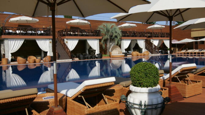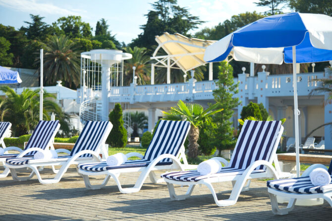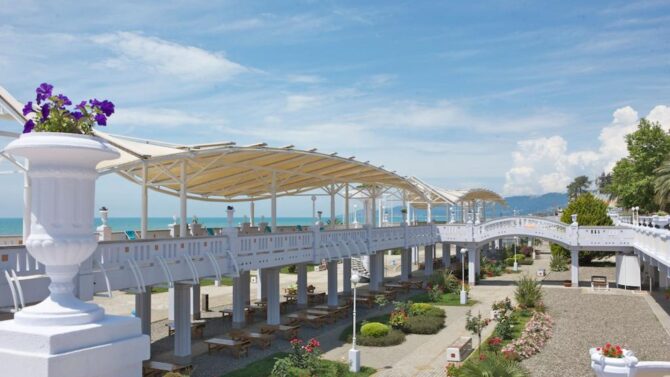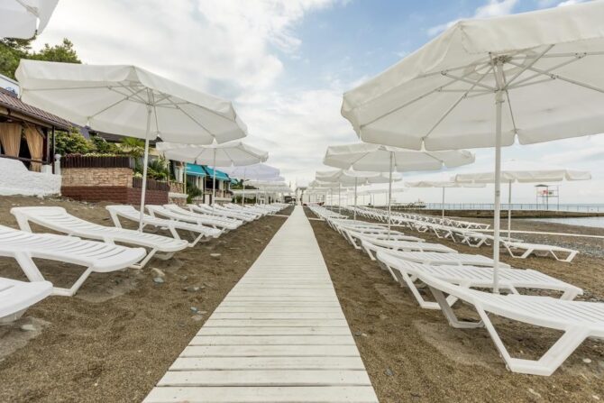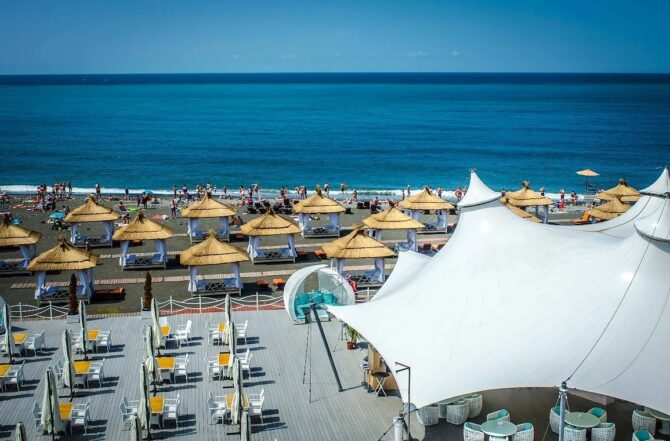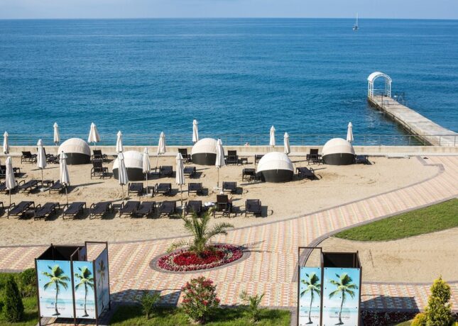 Пятизвездочные отели Сочи имеют на своем балансе благоустроенные пляжи. Самым фешенебельным из них считается Swissotel Sochi Kamelia. Для проживающих в курортном комплексе вход бесплатный. За экологическую чистоту и безопасность пляж был удостоен Голубого флага. Это престижная награда международного Фонда экологии. Для того, чтобы пройти на территорию через пропускной пункт, потребуется специальный пропуск, который оформляет администратор отеля.