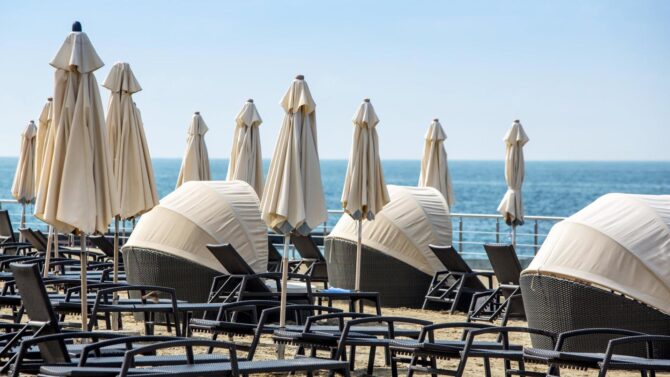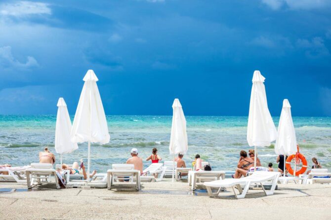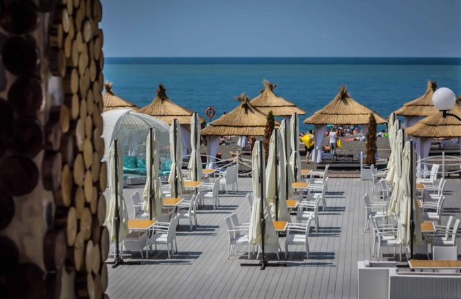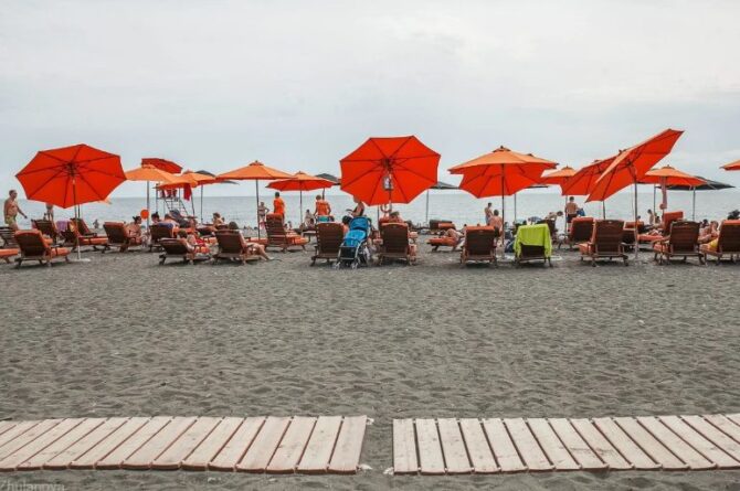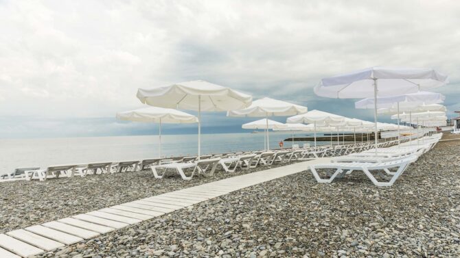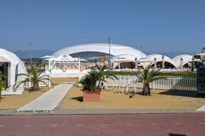 В целом, вход на лучший пляж Сочи «Ривьеру» бесплатный. Но с [y] года здесь стали продавать единые абонементы на несколько дней, в которые входит оплата зонта, шезлонга и матраса. Новшество не особо прижилось, хотя многими курортниками воспринялось, как удобная услуга. Ривьера – это не только пляж. На территории построены детская и спортивная площадки, зона фитнеса и система физической подготовки бренда CrossFit, веревочный парк, амфитеатр. За сезон здесь проводится более 150 концертов известных исполнителей. Центр города, морской порт, прогулочные аллеи на Набережной, фешенебельные отели находятся в шаговой доступности.