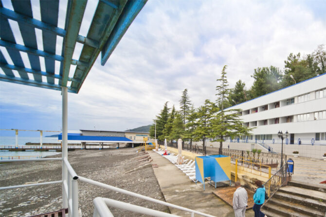 Гранд-отель «Жемчужина» был и остается одним из самых фешенебельных комплексов Большого Сочи. Зимой здесь можно воспользоваться большим плавательным бассейном с подогревом воды. летом гостей принимает собственный пляж протяженностью 300 м. вдоль береговой линии установлены теневые аэрарии. К услугам посетителей: аренда шезлонгов и зонтов, кабинки для переодевания, пресный душ, медпункт, туалеты, аттракционы и развлечения, станция серфинга, массажные палатки, магазины, кафе и бары. Посещение пляжа для проживающих в «Жемчужине» — бесплатное.
