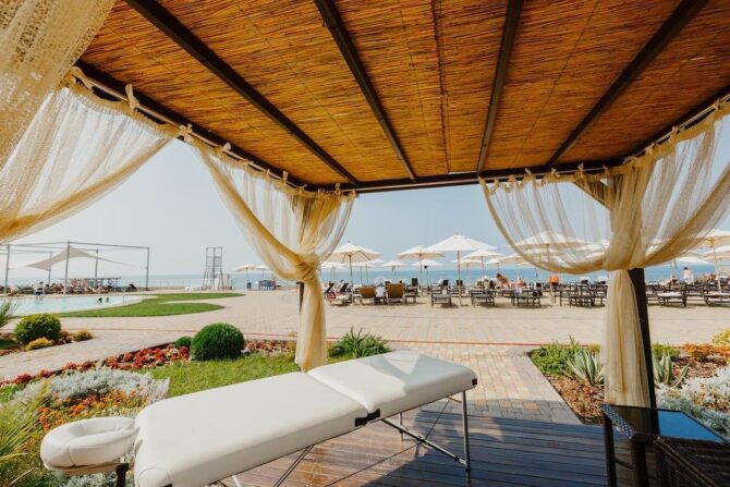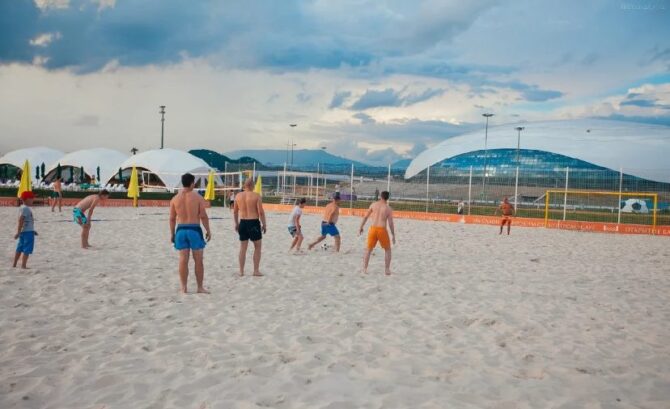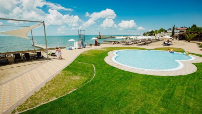 Современная инфраструктура продумана для посетителей с любыми интересами и увлечениями. Созданы прогулочные аллеи, участок для занятий йогой на гамаках, тренажерная и волейбольная площадки, детская игровая зона. Днем здесь проводятся развлекательные программы с участием аниматоров, вечером – шоу-представления. Бесплатно пляж могут посещать только гости основного корпуса отеля. Для остальных предусмотрен прейскурант в зависимости от места проживания. Туристы, отдыхающие в других курортных комплексах должны заплатить по 300 руб. за обычное пребывание на территории или по 600 руб. за ВИП-зону (цены актуальны на [y] г.)