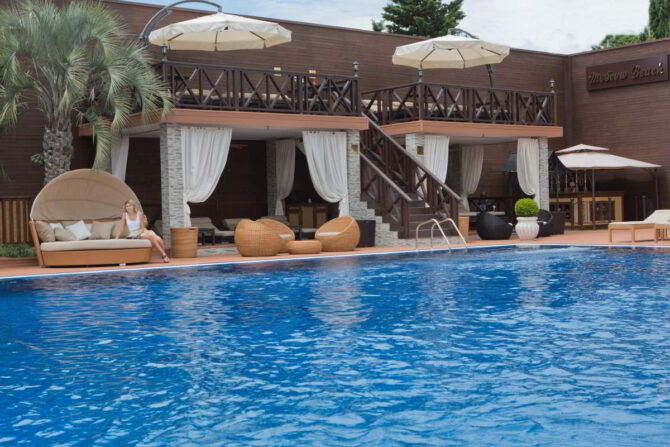 Пляжный комплекс СПА-отеля «Волна» называется MOSCOW BEACH. Он находится в отдельной зеленой зоне. Для отдыхающих работают: плавательный бассейн для взрослых с гидромассажем и лаундж-зоной с шезлонгами, детская купальня с фонтаном, двухуровневые бунгало, бар на воде, ресторан и кальянная, СПА-центр, салон тайского массажа. В аквапарке «Амфибиус» отдыхающие найдут развлечение по душе. В нем установлено 16 водных аттракционов и горок.