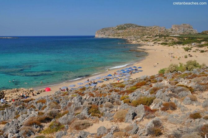 Некоторые называю Элафониси Критскими Мальдивами из-за бело-розового песка, намытого ветрами и течениями. Розовый цвет песок получил за счет большого содержания примесей, содержащих мелкие обломки ракушек и кораллов. В переводе Элафониси означает олений остров, но оленей вы здесь не увидите. Находится этот островок в 75-ти километрах от города Ханья. Добраться сюда можно на автобусе, с экскурсией и на арендованном автомобиле. Отелей вблизи пляжа нет, поскольку это место является заповедником и находится под охраной. Здесь обитают редкие виды приц и есть растения эндемики. Если вам нужны удобства на пляже, то лучше остановиться на ближайшей к дороге его части, где есть кабинки для переодевания, душевые, туалеты и закусочные. Если решите отправиться на остров, вы должны понимать, что там ничего этого нет. Но взамен вы получите больше красоты, больше природы и единения с ней. Можно даже найти лагуну, где кроме вас не будет никого.