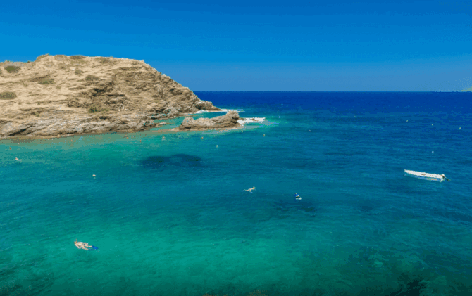 Это один из самых труднодоступных пляжей острова Крит. Добраться сюда можно либо на машине по грунтовке, рискуя выложить кругленькую сумму, если случится поломка на этом отрезке пути, или же на корабле из порта Киссамос, купив билет самостоятельно, либо в составе групповой экскурсии. Чем же так уникально это место? Тем что течения и ветра в компании с природным ландшафтом сотворили здесь уникальнейшее по своей красоте место. Цвета моря здесь просто поражают. Кто-то насчитывает 16 оттенков кто-то 18, а еще говорят что именно здесь сливаются 3 моря: Ливийское, Ионическое и Критское. Но возможно, это просто красивая замануха для туристов, потому что конкретного места слияния никто и никогда не видел. Но побывать здесь однозначно стоит. Хотя бы одним глазком посмотреть на эту неземную красоту.