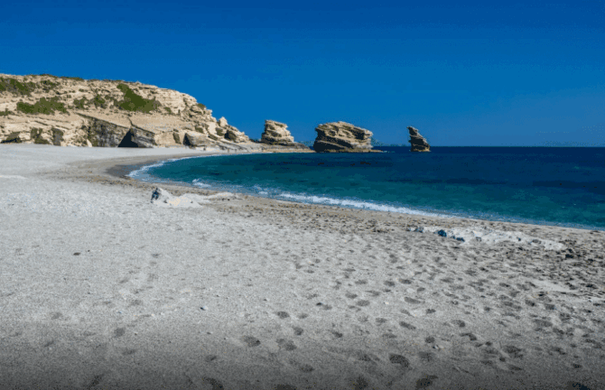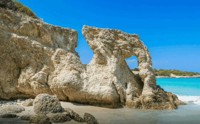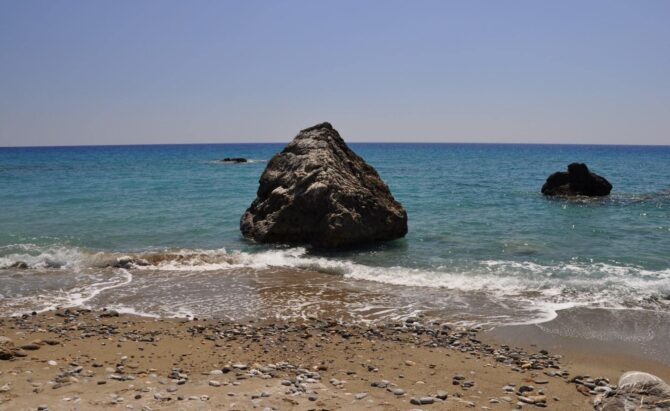 Он находится в 52-х километрах от города Ретимна. Свое название пляж получил из-за трех огромных глыб, торчащих из воды. Триопетра переводится как «трехкаменная». Это огромный пляж, начинающийся у этих скал, и простирающийся на запад на несколько километров. Расположен он так, что если дует южный или западный ветер, то купание будет под большим вопросом. Но зато здесь обалденно красивые закаты. Неподалеку находятся и другие пляжи: Дюны Святого Павла, Бухта Святого Павла с пляжем и небольшими отельчиками и тавернами, и пляж Лигрес. Кемпинг на этом пляже не разрешается.