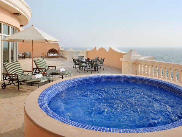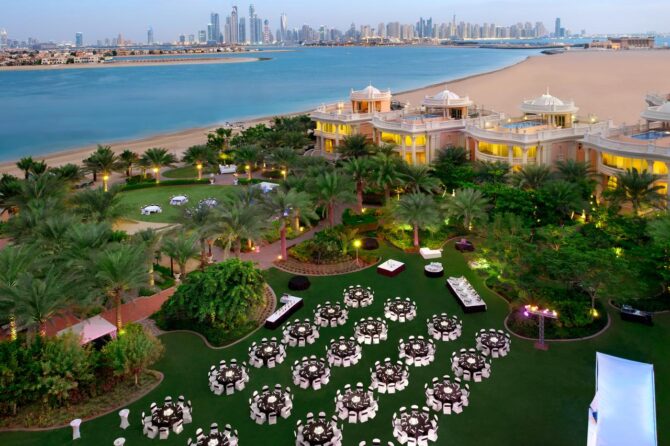 Kempinski Hotel & Residences Palm Jumeirah — роскошнейший отель находится на острове Пальма-Джумейра, на его западной части. Изюминкой фешенебельного комплекса является его потрясающий частный пляж. Белоснежная береговая линия, которую омывают лазурные воды прозрачной лагуны, растянулась на 500 метров.