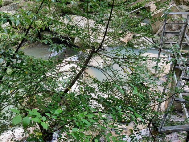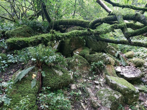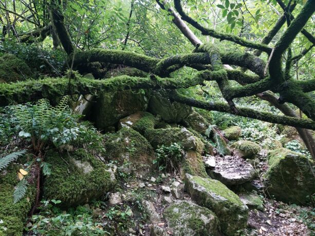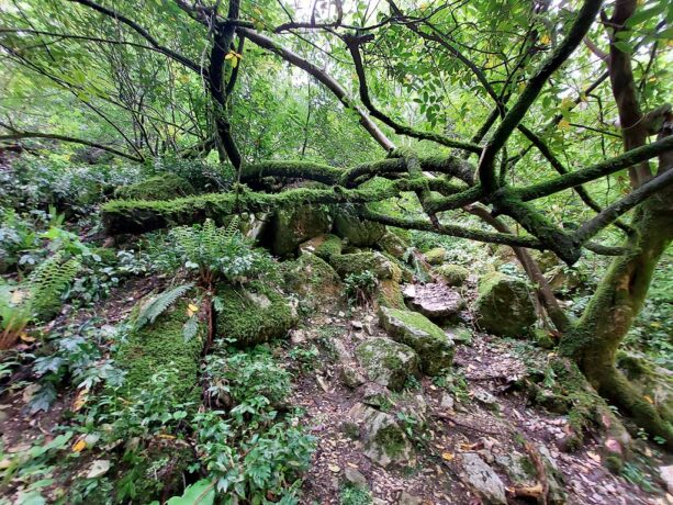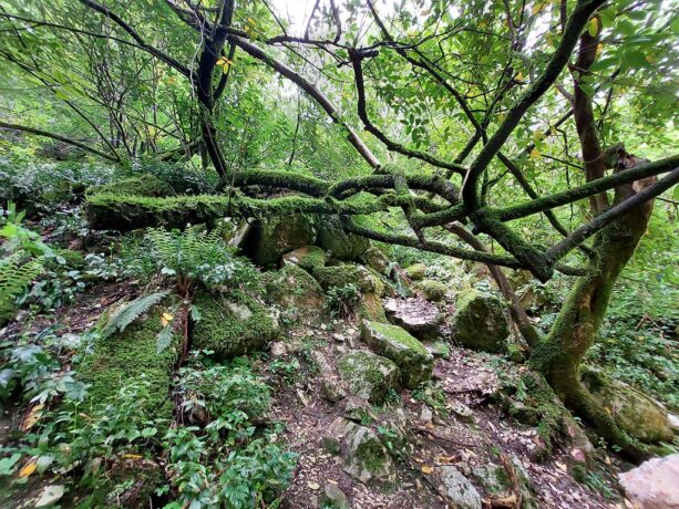 Кроме деревьев с непривычной формой, здесь растут цветы, разнообразные травы и кустарники. Наблюдая за ними, путешественники незаметно для себя подойдут ко второму водоскату. Он несколько шире предыдущего, но не такой высокий. Его высота достигает до 23 метров скалы покрыты мхами. Здесь их огромное количество, разных видов и форм. Несмотря на крутой подъем, идти несложно. Опасные участки огорожены, на лестницах установлены перила. Заблудиться невозможно, повсюду установлены указатели.