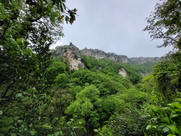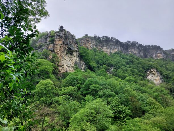 Отдохнув и перекусив на Поляне дружбы, туристы отправляются в свой первый подъем. Он ведет на вершину 200-метровой скалы. Тропа и лестница не крутые, подниматься достаточно легко даже людям с плохой физической подготовкой. По пути повстречается дерево, прозванное в народе «одноглазым циклопом». Если смотреть снизу, то в его стволе имеется нарост, действительно похожий на «всевидящее око». Гиды говорят, что когда-то здесь обитал злой циклоп, охраняющий ущелье от непрошенных гостей.