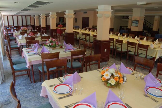 Каждое утро в ресторане накрывается завтрак по системе «шведский стол». Блюда под заказ содержат в себе все вкусы македонской кухни, а также местные деликатесы. Гости могут отдохнуть в снек-баре и насладиться освежающими напитками, или посетить ресторан Glamour, который находится в 5 минутах пешком.