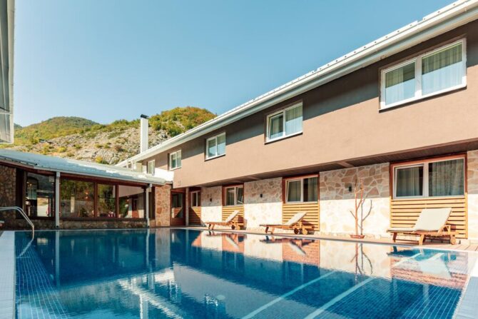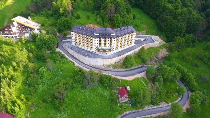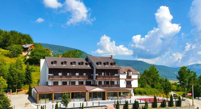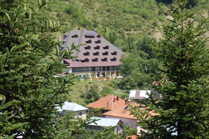 Отель с видом на озеро Маврово расположен на возвышенности, более 1200 метров над уровнем моря. Живописное место находится среди горных склонов горы Бистра – лугов, пастбищ и огромных лесов, которые лежат в границах национального парка Маврово.