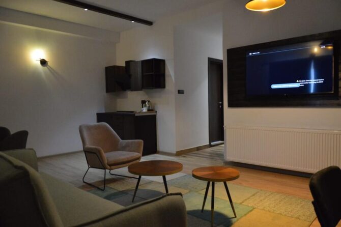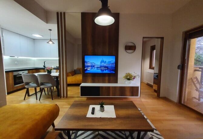 Maxim — это 32-метровая квартира, расположенная в курортном городе Маврово. Апартаменты имеют свежий ремонт, привлекательный дизайн, современную мебель и технику. Владельцы не позволяют проводить в квартире шумные многолюдные торжества. Более всего это уютное гнездышко с видом на горные вершины подходит романтичной молодой паре для проведения медового месяца или совместных каникул. Для гостей предусмотрена парковка во дворе, балкон с видом на горы и бесплатный Wi-Fi во всей квартире.