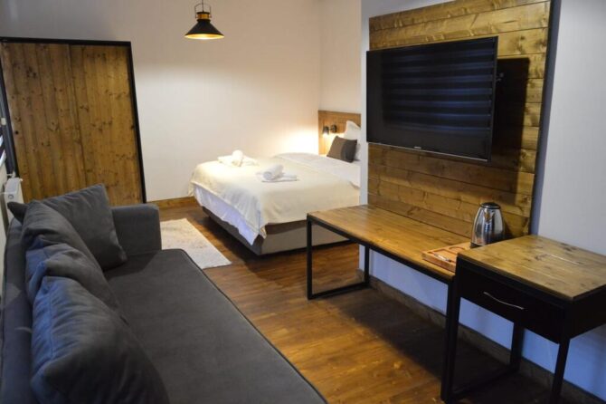 Филипп и Яна в Маврово — это уютные 33-метровые апартаменты с балконом и потрясающим видом на горы. Квартира находится в полутора километрах от озера Mavrovo. За 10 минут неспешной ходьбы можно попасть на станцию канатной дороги Dvosed II. В квартире одна спальня и одна гостиная. Интернет доступен в каждом помещении квартиры. Рядом с квартирой есть бесплатная парковка для нескольких автомобилей. Апартаменты не подходят для семей с детьми, так как владельцы установили минимальный возраст заселения — 18 лет. С домашними животными так же нельзя заселиться. В квартире нельзя проводить вечеринки и курить.