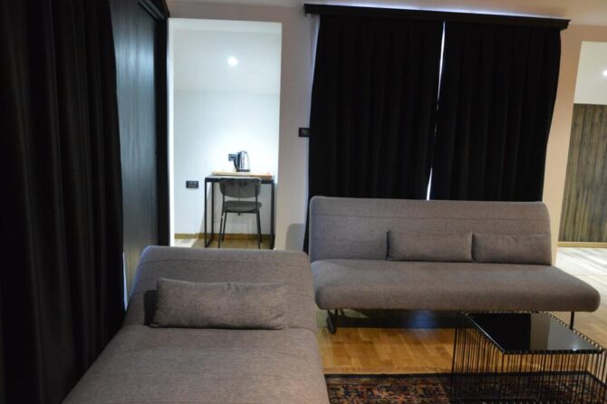 Все комнаты в этих апартаментах оборудованы красивой мебелью. Сдержанные, но уютные цвета, современная техника, продуманная обстановка — все это делает отель привлекательным для любителей горнолыжного отдыха.