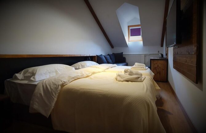 Отель с 1963 года предоставляет комфортное размещение путешественников и спортсменов. Всего в отеле 30 номеров, самый маленький вмещает двоих гостей, а самый большой предназначен для VIP гостей. Каждая комната обставлена эко-мебелью и выполнена в стиле деревенской роскоши.