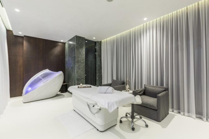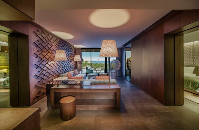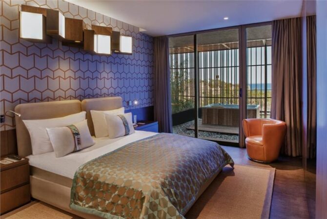 В помещениях с повышенным комфортом есть персональный хамам и эксклюзивный пляжный павильон. Занавесками и электронными девайсами можно управлять через iphone или ipad.