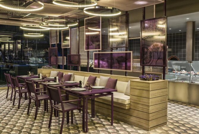 - Azure 24 работает круглосуточно и предлагает отведать международные блюда. Можно выбирать еду по принципу шведского стола, а также по меню.