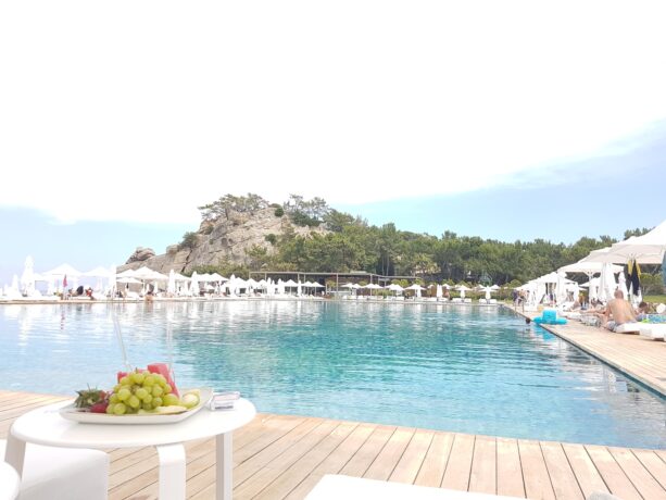 Валентин, 43 года: «Готовят здесь вкусно и разнообразно, сервировка просто восхитительная. Понравилось то, что даже на пляже официанты приносят еду и напитки к лежакам, не нужно напрягаться и ходить что-то выбирать. Есть собственная кондитерская, шоколадница, алкоголь качественный. Вечером есть живая музыка, нам с женой очень понравилось проводить под нее романтические ужины. Была и дискотека, но мы на нее не ходили, так как хотели уединиться, а она нам и не мешала».