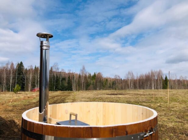 Необычные дома в Подмосковье часто строят на берегу водоемов. В этой категории относится мини-дача рядом с Верхнерузским водохранилищем. Сюда любят приезжать на выходные родители с детьми и компании из 4-х человек. Хозяева обустроили для постояльцев самые комфортные условия загородного отдыха. Частная территория занимает площадь в 1 гектар. На этой земле не бывает чужих. Часть леса, поляна, пирс на воде полностью находятся в распоряжении гостей. Рядом с домом расположена зона барбекю и установлен чан для принятия термальных процедур.