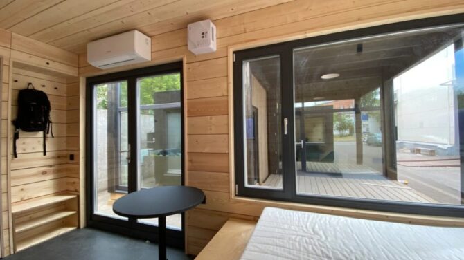 Мини-дом находится в Сокольниках. Его любят арендовать «московские отшельники». Для них важно не уезжать далеко от столицы и в то же время отдохнуть на свежем воздухе. Из приезжих мало кто знает, что можно снять миниатюрные необычные дома в одном из самых легендарных районов Москвы. «Лесное убежище» находится в старейшем парке столицы. Несмотря на малые габариты, внутри дома расположены кровать, шкаф для вещей, отопительный радиатор, стол, мини-кухня, санузел. Перед входной дверью расположена небольшая веранды. Рядом предусмотрена парковка для транспортных средств. Сюда могут приехать как на шикарном автомобиле, так и обычном велосипеде. Здесь отдыхают разные по занятиям люди – студенты и предприниматели, врачи и аспиранты. Многие считают это место раем для творческих людей, особенно для писателей и поэтов.