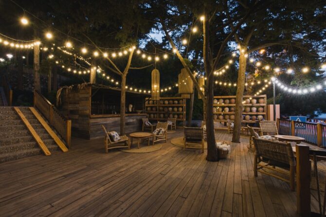 Не забыл владелец и о любителях спа-процедур. Он построил турецкую баню с деревянным бочонком для омовения. В отдельной комнате оборудована лаундж-зона с кальяном. Она оформлена в восточном стиле с диванами, подвесными креслами, мягкими подушками. Здесь не обязательно курить кальян, а можно просто почитать любимую книжку в прохладе и уединении.