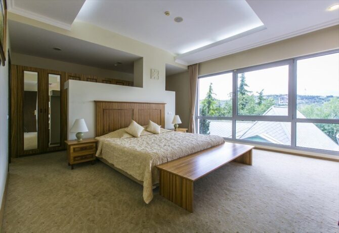 - Люкс (55 кв. м) с балконом и видом на море – двухкомнатный номер с авторским современным дизайном. Возможно размещение до пяти человек. Предусмотрены две двуспальные кровати и раскладное кресло в одной из комнат. Зона отдыха с кофейным столиком и полукреслами расположена у панорамных окон, из которых открывается прекрасный вид на морское побережье.