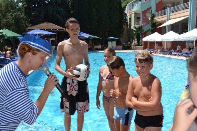 Отдельной чаши для купания детей не предусмотрено, но маленькие гости отеля давно облюбовали гидромассажное отделение и с удовольствием проводят досуг на ее мелководье. На пляжах поселка имеются другие развлечения. К ним относятся катания на бананах и ватрушках, «лягушатники» с игрушками и горками. Если появляется желание разнообразить отдых, то родители с детьми отправляются в Приморский парк, который находится в 800 метрах от гостевого дома. Это отдельная зона отдыха, представляющая собой ботанический сад в миниатюре. Чудесная роща Семидворья объявлена памятником природы еще в 1947 году.