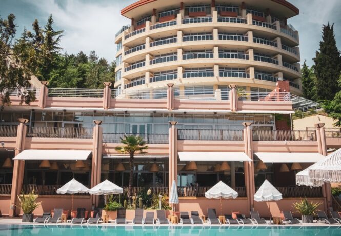 «Очень приятный и современный приморский отель. На небольшой территории есть абсолютно все – бассейн, детская площадка, места отдыха для взрослых, спортивный инвентарь. Ресторан имеет два зала – открытый и закрытый. На крыше оборудована смотровая площадка (вид волшебный). Персонал на редкость гостеприимный. Полотенца меняют вовремя, не хамят, решают проблемы. К морю ведет пологий спуск, что очень удобно для родителей с маленькими детьми» Ольга, Россия