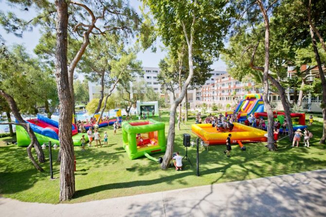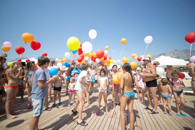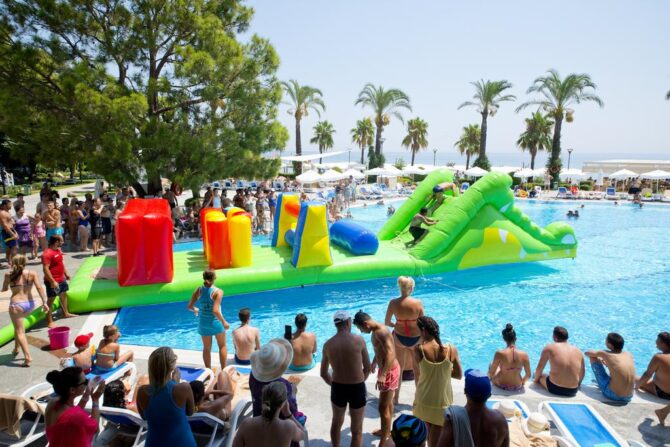 Днем вы можете посетить водную гимнастику, фитнес, пилатес, растяжку и степ. Для развлечения займитесь мини-гольфом, дартсом, футболом, настольным теннисом, любым видом волейбола, бадминтоном и другими активити.