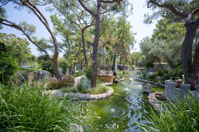 В детском городке маленькие гости найдут себе друзей и весело проведут время. Пока взрослые отдыхают, аниматоры полностью займут их время развлекательными и познавательными программами. Для ребят подготовлены танцы, фильмы, катания на горках и специальные веселые шоу. Взрослым и детям нравится мини-зоопарк, который расположен на территории. Там можно найти разные виды красивых птиц.