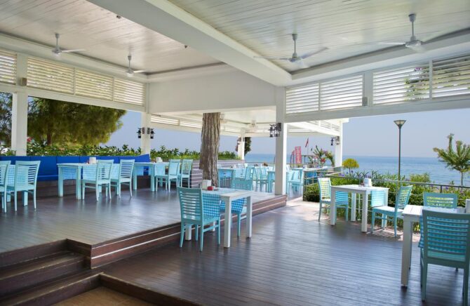 Попробовать алкогольные и безалкогольные напитки можно в одном из шести баров, которые расположены по всей территории, включая пляж.