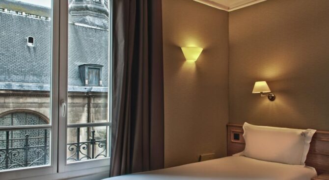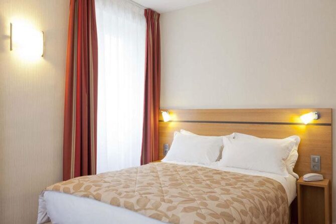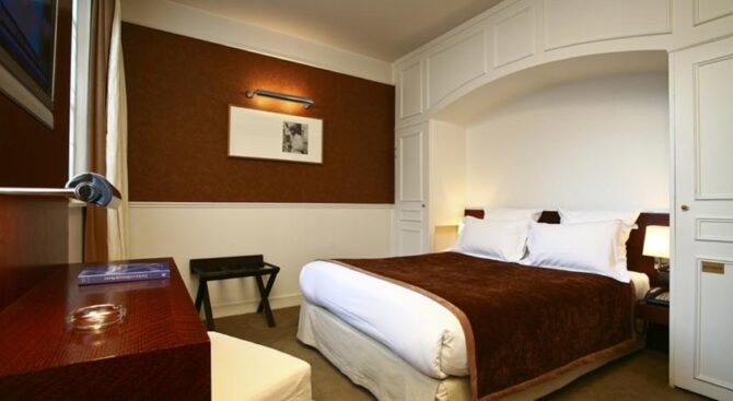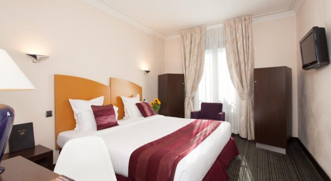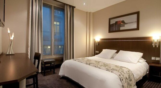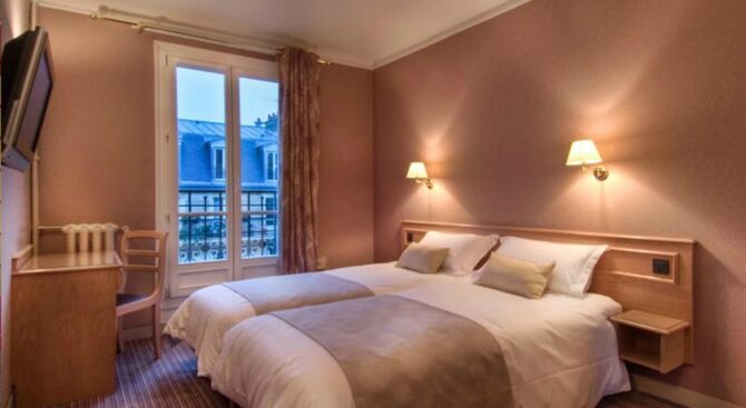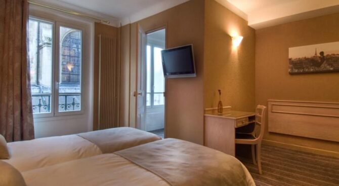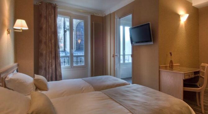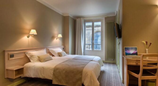 Этот тихий недорогой отель в центре Парижа понравится туристам своей уютной обстановкой и приветливым персоналом. Около 50 номеров располагают всем необходимым для комфортного отдыха. В комнатах предусмотрены рабочая зона с письменным столом, а также шкаф для хранения вещей. В отдельном помещении при обращении на ресепшен можно оставить крупногабаритный багаж и чемоданы.