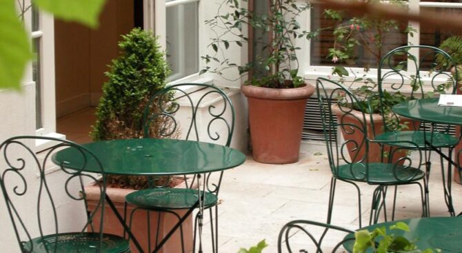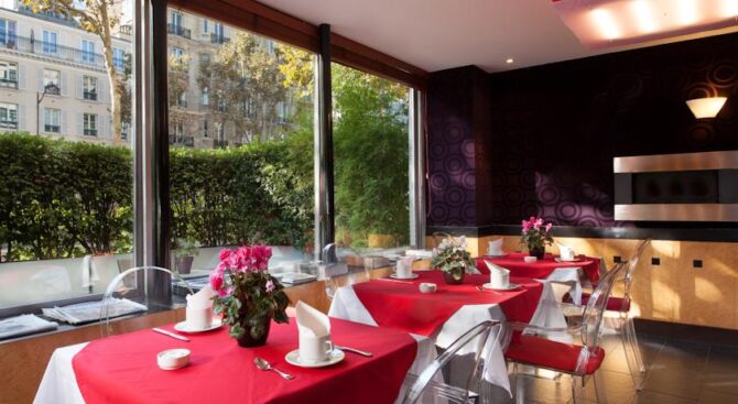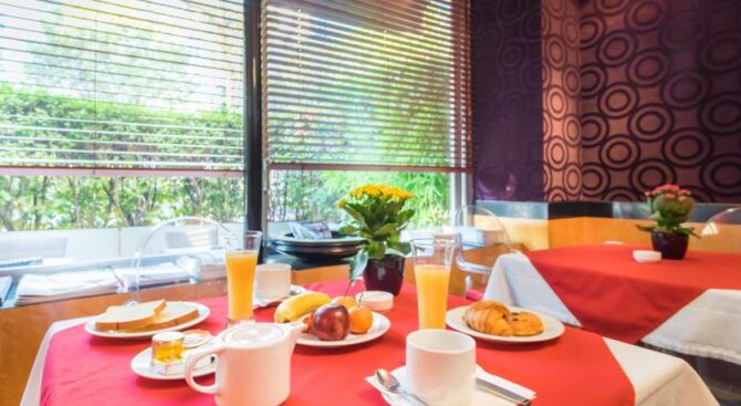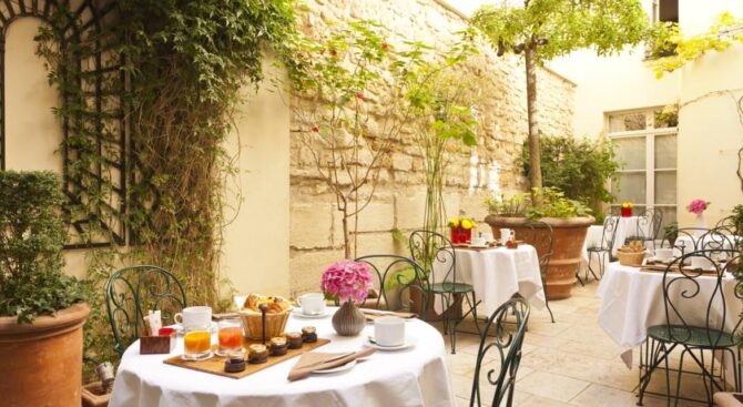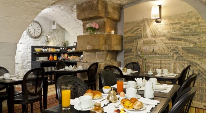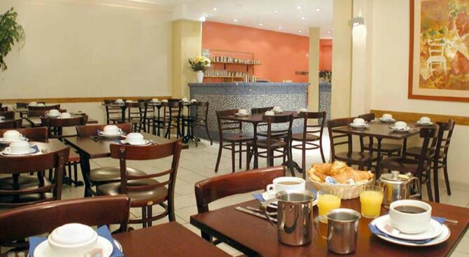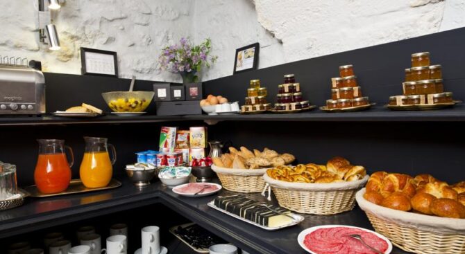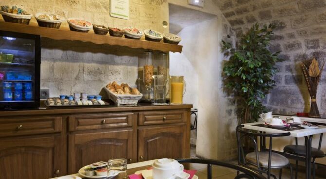 Этот недорогой отель в центре Парижа располагает просторной гостиной на первом этаже, в которой по утрам для постояльцев накрывают сытные завтраки. На столах в гостиной каждый день появляется свежая выпечка, десерты, кофе. При желании завтрак может быть доставлен в номер, а также собран «с собой», если гостей ждет длительная экскурсия или поездка.