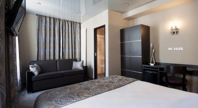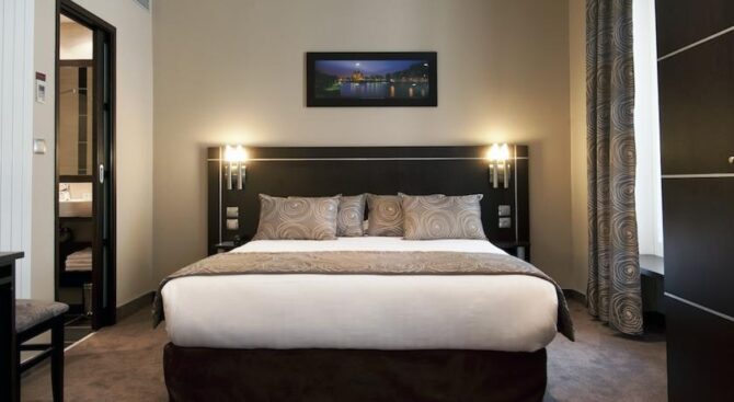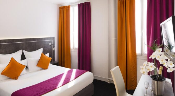 Этот недорогой отель в центре Парижа занимает старинное здание с полуциркульными окнами и «французскими» балкончиками. Все номера оформлены в разных стилях. Гости могут выбрать проживание в комнате с классическим интерьером или разместиться в ярком дизайнерском номере с красочным оформлением и мебелью в аристократическом стиле.