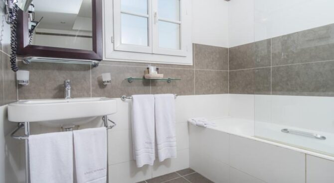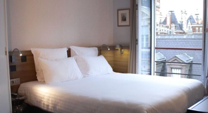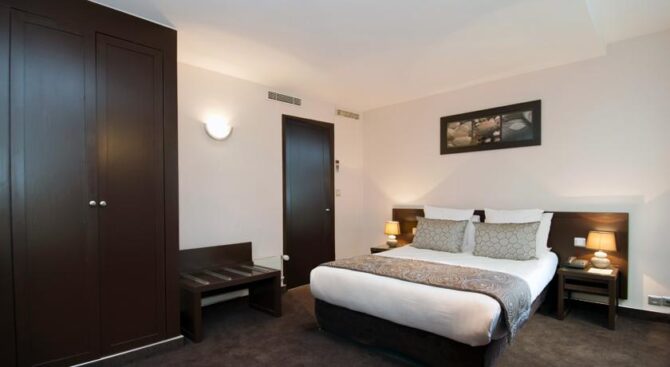 Отдых в центре города позволяет не только постоянно находиться в окружении культурных и общественных событий, но и решать бизнес-задачи. Недорогой отель в центре Парижа Choiseul Opera располагает элегантными номерами, в которых для гостей предусмотрен санузел с душевой кабинкой, двумя раковинами, набором полотенец и феном. Грамотно заполненное пространство вмещает не только большую кровать и мебель для хранения вещей, но и удобную рабочую зону. Дизайн номеров выполнен на контрасте темных и светлых тонов, что вполне по-европейски.