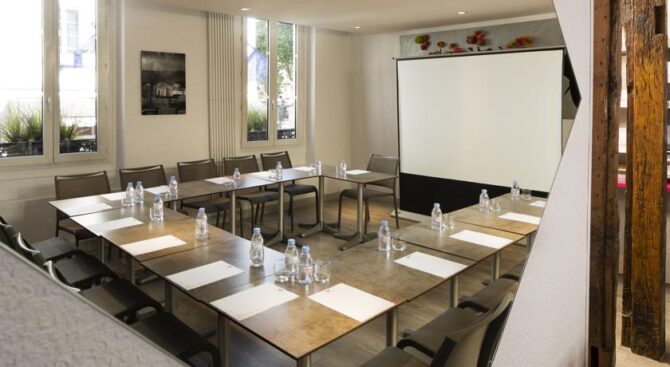 Этот отель многие туристы выбирают для проживания в Париже во время деловых поездок. Для мероприятий можно использовать небольшой конференц-зал и переговорную. Для совершения звонков в номерах предусмотрены телефоны с городской и международной связью.