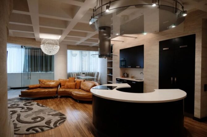 Роскошный элитный ремонт и стиль элитной классики в оформлении дизайна создают ощущение роскоши и комфорта, а также уютную и жизнерадостную атмосферу.