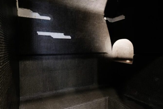 - Ванная комната на первом этаже. Ванна выполнена из цельного камня в виде саркофага.