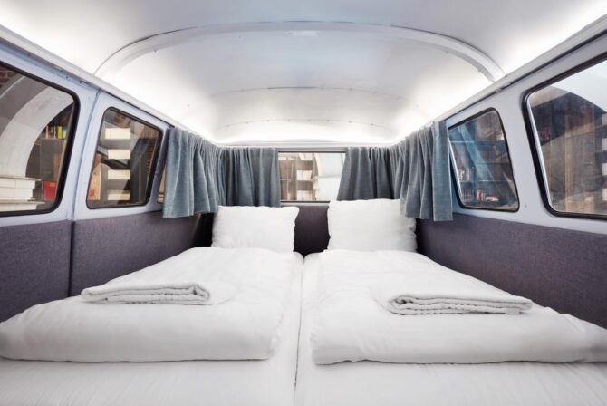 Из-за своей креативной планировки и авангардных элементов интерьера отель Not Hotel больше похож на галерею современного искусства, чем на место для проживания. Но не стоит беспокоиться, здесь расположено множество зон для отдыха и восстановления сил. Плюс гостям наверняка придется по вкусу тайская кухня из заведения под названием Kevin Bacon Bar. Каждый из 23 гостиничных номеров отеля Not Hotel имеет индивидуальную планировку и обладает необычным стилем. Например, гости могут забронировать номер в отремонтированном трамвае начала 20-го века или провести ночь в секретных комнатах, спрятанных за ложными книжными шкафами. Помимо подобных причуд, каждый номер оборудован двуспальной кроватью, ванной комнатой и другими необходимыми предметами обихода.