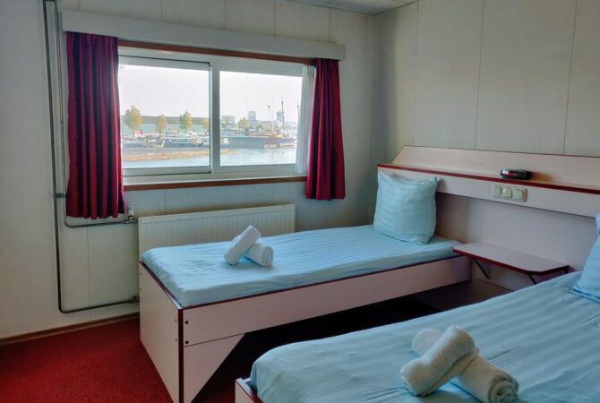 Этот отель в форме корабля расположен в отреставрированном круизном лайнере, пришвартованном к северным берегам залива Эй. Гостям предоставляется возможность отдохнуть в одном из 170 просторных номеров. Для VIP-клиентов предусмотрено пять индивидуально оформленных номеров, расположенных внутри красных букв Botel, которые находятся на верхней палубе лайнера. Гости отеля во время своего пребывания получают прямой доступ к модному, постиндустриальному кварталу Амстердама NDSM Wharf. Отсюда они могут добраться до центра города за считанные минуты на скоростном пароме, который останавливается неподалеку.