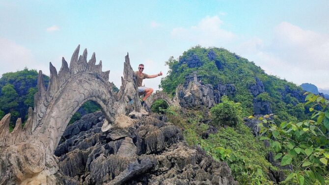 Гора Ханг Муа интересна двумя уникальными пещерами. Достопримечательность расположена в деревне Дай Ха. Муа в переводе означает «танцующая». Название пещеры произошло от старинной истории, когда король Тран по дороге в столицу Хоалы, часто останавливался в пещере Муа. В ее больших каменных залах для него устраивались танцевальные представления в исполнении императорских служанок. В то время к вершине горы было проложено 486 каменных ступеней. Дорога к пещере имитирует Великую китайскую стену, поэтому мест для фотосессий будет много. С вершины открываются великолепные виды на рисовые плантации, горы и пагоду Бай Динь. Подъем займет от 25 до 45 минут.