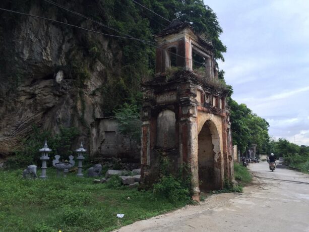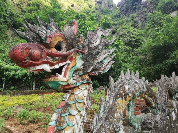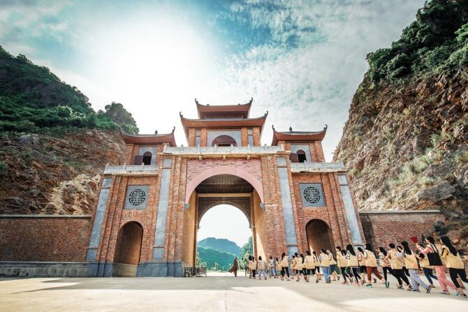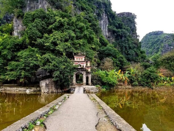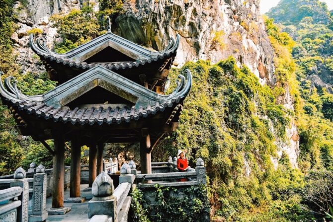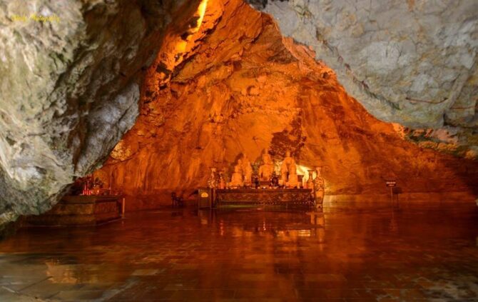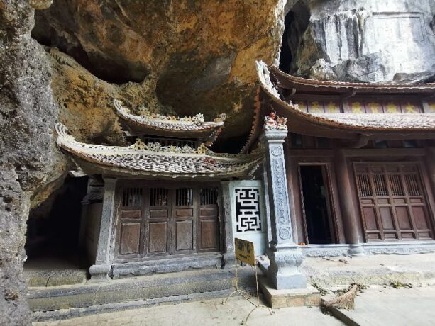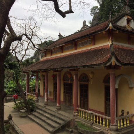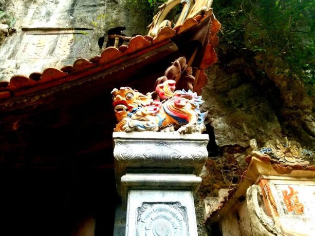 Построенный в 15 веке буддистский храм – это исторический и религиозный памятник вьетнамского народа. В 1428 году несколько странствующих монахов решили возвести на этом месте пагоду. Красота природы настолько впечатлила их, что святилище постарались соединить с окружающим ландшафтом. Все его помещения находятся в карстовых пещерах, ступени к ярусам вырезаны в скале, небольшие ступы-алтари обрамлены растениями. Путь к пагоде проходит через каменный мост. Три уровня помещений связаны между собой переходами со ступенями.