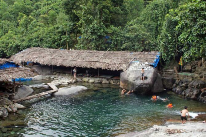 Отдельный день стоит посвятить посещению горячих источников Кень Га. Местные отели предлагают отдохнуть в естественной обстановке хорошо известного и любимого курорта, который предлагает множество удобств и изысканный сервис. Можно провести день, расслабляясь и наслаждаясь. Персонал поможет организовать рыбалку или водную прогулку на лодке в близлежащую деревню. Плавание в бассейне с горячими источниками подарит здоровье и бодрость телу. Вода поступает из недр горы Ханг Ка. Ее температура составляет +53С. В ресторане готовят фирменные блюда, способные удовлетворить любой вкус. Площадь источников со сферой обслуживания занимает территорию в 8 га. Оздоровительный комплекс можно посетить самостоятельно, на ресепшн предоставят парковочное место, или заказать тур в любом агентстве.
