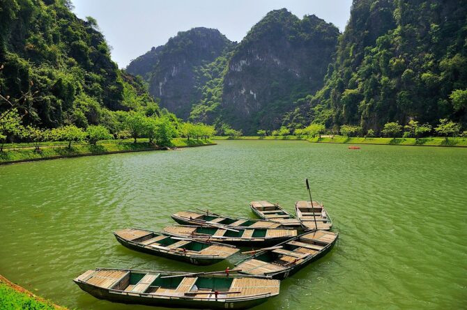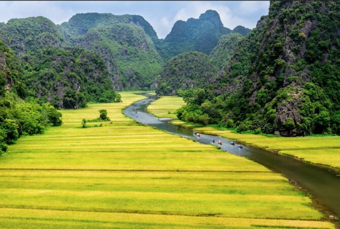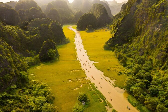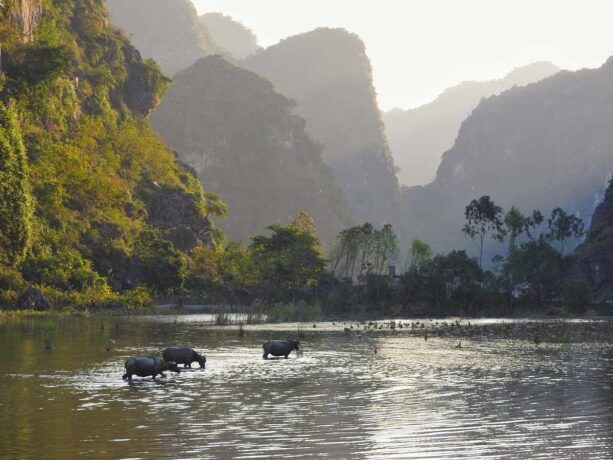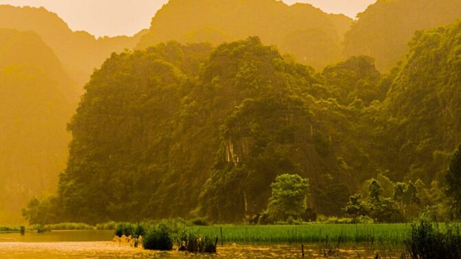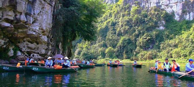 Знакомство с местными красотами лучше всего начать с посещения Национального парка Там Кок. Его скалы, гроты и пасторальные пейзажи сравнивают с красотами бухты Халонг. Безмятежность и величественность – этими двумя эпитетами можно охарактеризовать атмосферу, созданную силой природы. Вьетнамцы назвали парк в честь трех взаимосвязанных пещер. Они сквозные. Появились в известняковых породах за счет вымывания породы водой. Через них течет река Нго Донг. На пристани всегда толкутся местные лодочники, предлагая водную экскурсию за небольшие деньги.