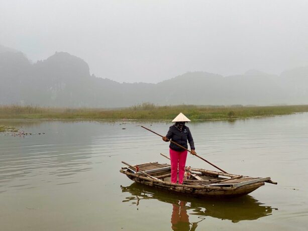 Путешествие начнется с заводи. Берега которой поросли лотосами. Их аромат надолго останется в памяти и не отпустит вплоть до окончания экскурсии. Вьетнамцы управляют лодочками двумя способами: с помощью рук, чтобы было удобнее лавировать на поворотах, и, в основном, с помощью ног, чтобы взять в руки фотоаппарат и фотографировать клиентов. Весла закрепляются щиколотке. Таким образом лодкой могут управлять даже дети и старики. Они делают все возможное, стараясь угодить пассажирам: разговаривают, рассказывают местные легенды, поют. Кстати, клиентам обязательно выдаются спасательные жилеты.