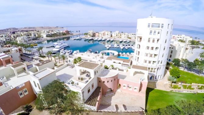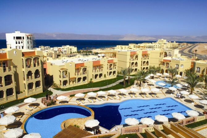Отель Marina Plaza Tala Bay 4* находится в райском местечке в Иордании, неподалёку от Акабы, у побережья Красного моря. С аэропорта время поездки на автобусе составляет 15–20 минут. В процессе поездки отлично видно Израиль и египетский Синайский полуостров. Географически отель находится напротив города Таба.
