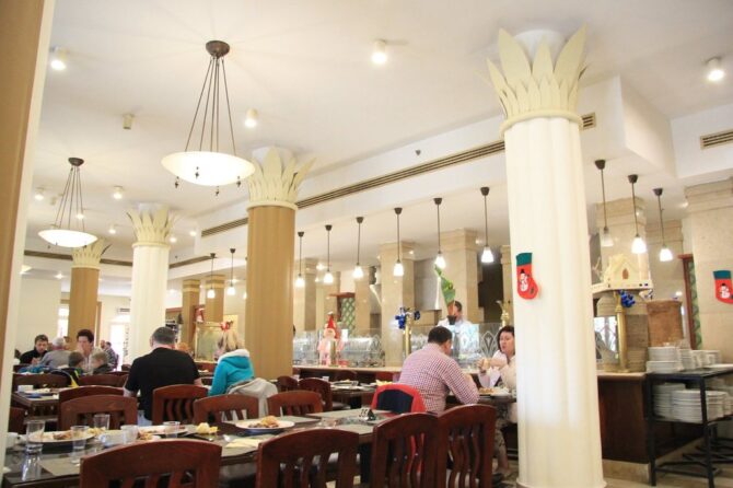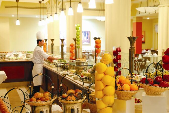 В ресторане организован шведский стол с многонациональными блюдами, заведение работает с 7:00 до 22:30. Также имеется восточное кафе, время работы: 17:00–24:00, а бар у бассейна работает с 9:00 до 24:00.