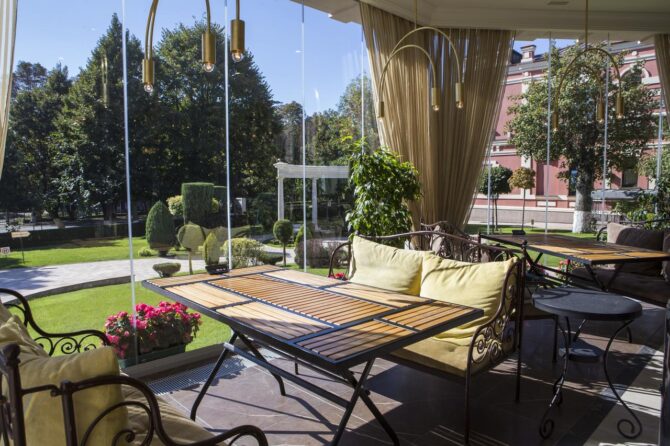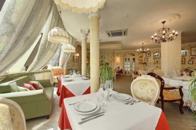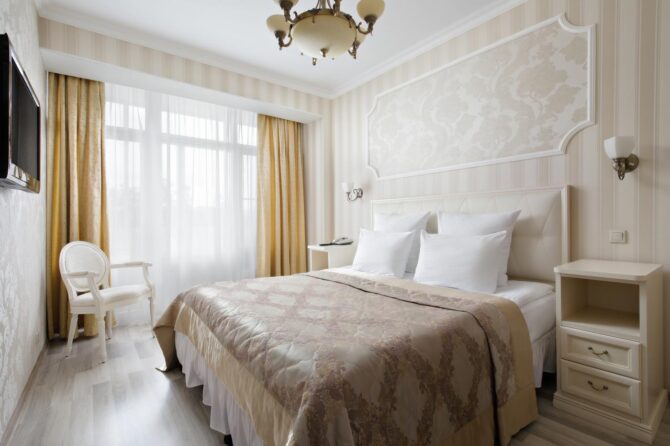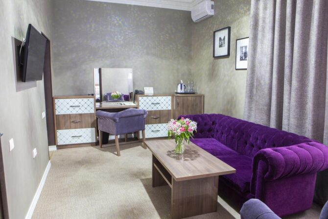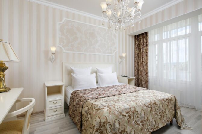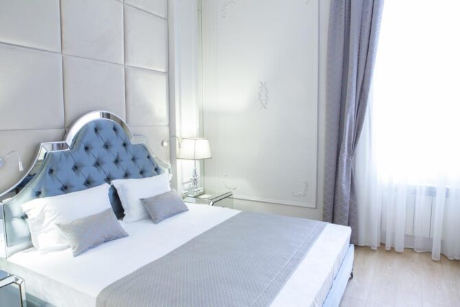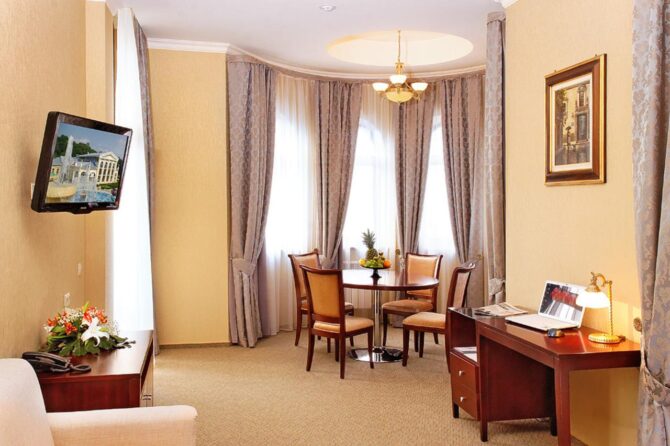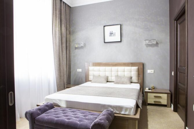 Отель предлагает своим посетителям номера высокого класса с определённым уровнем комфортности. Интерьер имеет единое стилистическое направление. В каждом номере присутствует элитная мебель от итальянских производителей, изготовленная по индивидуальному заказу. Туристы в спокойной атмосфере могут насладиться картинами авторского произведения, роскошным текстилем. Просторная ванная комната поможет расслабиться после косметологических процедур. Отель рассчитан на 40 мест. Цены элегантных номеров соответствуют требованиям гостиничного комплекса.