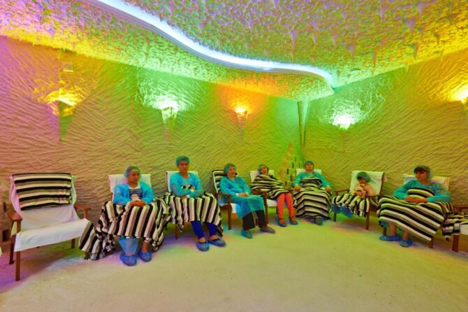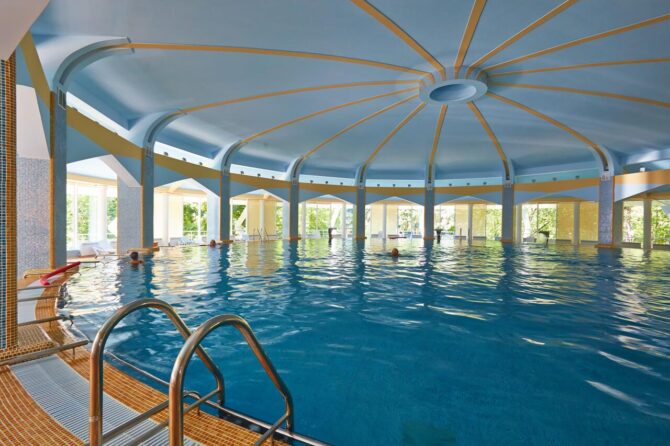 Отдых в гостинице позволяет окунуться в акватермальную атмосферу, и получить много положительных эмоций. Лечение проводится с помощью косметологических процедур. Они заключаются в посещении сауны, бассейна и комфортной зоны отдыха. Специалисты при выполнении процедур используют натуральные минеральные источники. В процессе лечения посетители получают психологическую поддержку. Водные процедуры способствуют быстрому выздоровлению от различных видов заболеваний. На территории гостиницы проводят лечебный массаж. Косметологические услуги входят в стоимость путёвки.