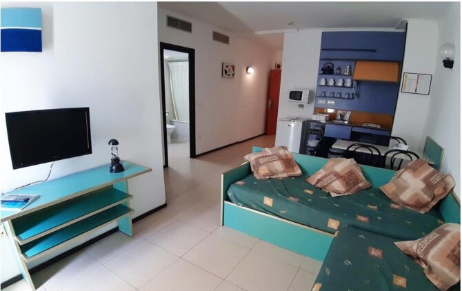 Номера оборудованы и декорированы таким образом, чтобы человек не чувствовал тут дискомфорта и с удовольствием возвращался сюда после морских процедур или интересных экскурсий. Уютную, почти домашнюю обстановку придает кухонный уголок, мини-холодильник и наборы посуды, чтобы люди спокойно могли выпить чай или кофе. В самом номере есть ванная комната, кондиционер, мини-бар, можно посмотреть телевизор.
